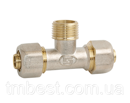 Трійник металопластиковий 20*1/2"Н*20 з зовнішньою різьбою розбірний